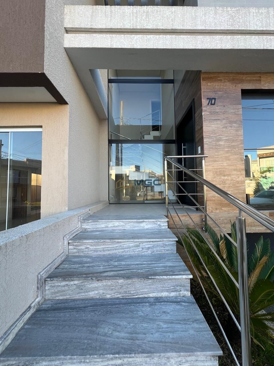 - Escada em granito natural e corrimão em aço escovado